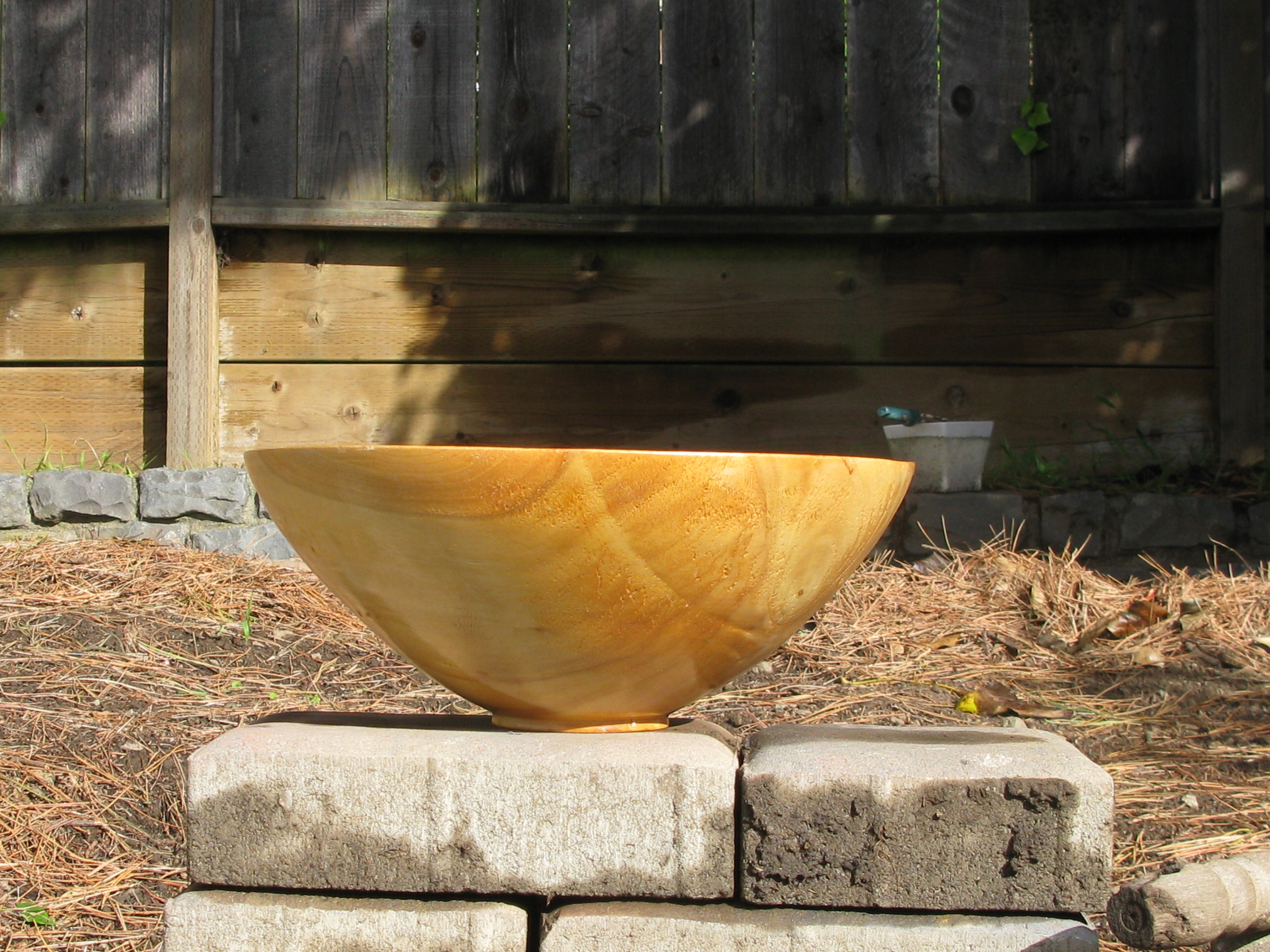 Two years after the new fence was installed, Bob knocked on my door. In his hand was a beautiful wooden salad bowl which he gave to me as a gift for all the wood I let him have. I love the bowl and cherish the memory of that old Poplar tree every time I fill it with fresh salad fixings. Bob moved to Hawaii so I’m not in touch with him anymore but the fence is still standing and one day it will come down again and when it does, I’ll look forward to talking to Pat again.