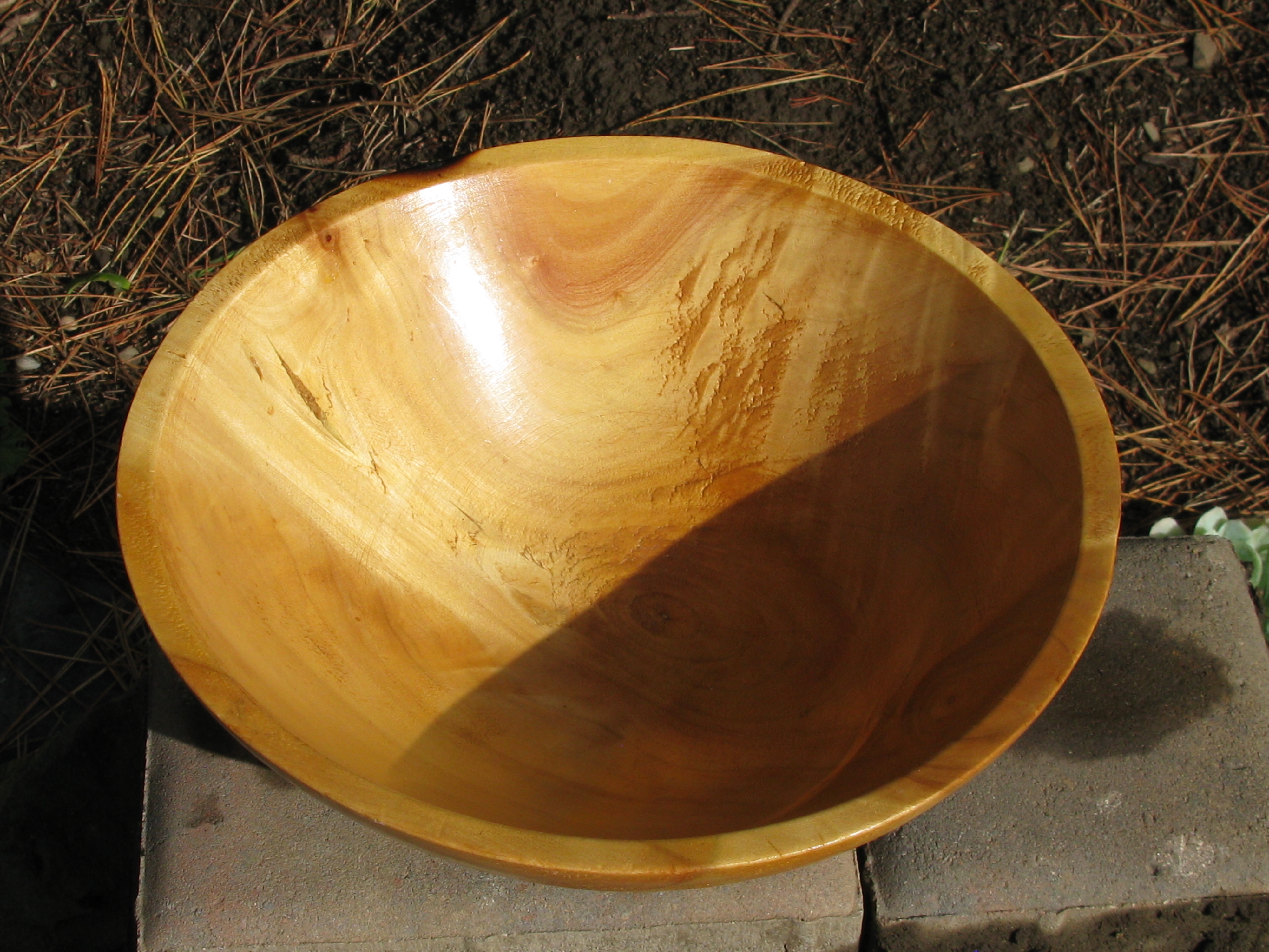 The problem was, the Poplar tree was dying and it rained sticky sheaths that kept would become lodged in our dog’s paws and get infected. It also created a lot of unnecessary shade on the rare days when a warm sun was shinning. So, we decided the tree had to go. It was no easy task for the team of arborists we hired to scale the 30’+ tree with their chain saws and safety straps to dismantle this old and fragile tree. Each freshly cut limb was hauled out to the street where it was fed into a machine that chewed up the bark and spat it out as mulch into a waiting dump truck. My next door neighbor, whom I had never met before, came up to me and introduced himself. His name was, Bob, he said his hobby was crafting wooden bowls and he asked me if he could have some of the cutting. I was happy to let him have whatever he wanted.
